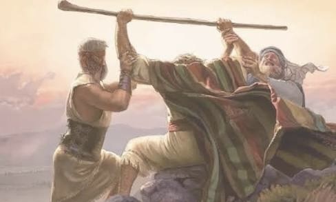 On another note regarding this transition, I was reminded of the image in Exodus 17 when Moses' arms grew tired, & his buddies Aaron & Hur held up his arms for him (whenever Moses' arms were raised, they were winning the battle, & whenever his arms lowered, they started to lose) ~ thanks to the help of Aaron & Hur, the Israelites won the battle against the Amalekites that day (of course really they just won because of God)!