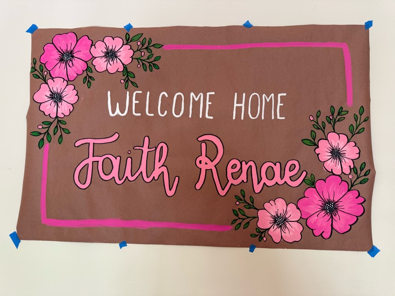 ^cutest welcome home poster my friend Michelle made🥹🫶🏼🩷